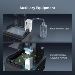 در مدلهای قدیمیتر، تمام فرآیند پر کردن رزین دستی بود. اما در M7 Pro، سیستم تغذیه خودکار رزین با حسگرهای سطح مایع، رزین موردنیاز را بهطور خودکار تأمین میکند — بدون وقفه چاپ.